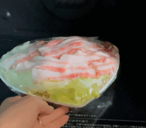 3. 豚肉を広げて並べたら、ふんわりラップをして電子レンジ(600W)で約5加熱する。